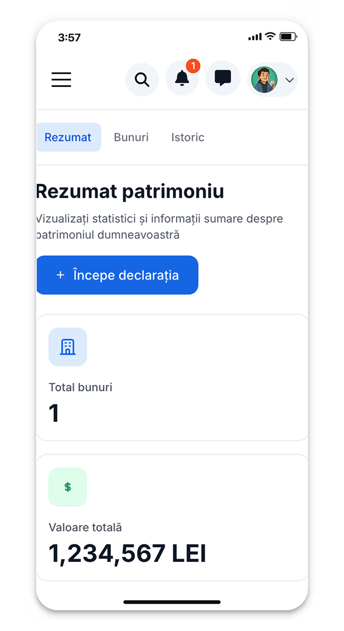 Officials from fiscal and cadastre departments access complete platform for records management: dashboard with all citizens' properties in the locality visualized on interactive map, system for verification and validation of asset declarations submitted by citizens, identification of discrepancies between declarations and Land Registry data, statistical reports with asset evolution by zones/neighborhoods. Mayor can track indicators: total built areas by zones, evolution of taxable base by property categories, dynamics of property exchanges (transactions, inheritances). Citizens benefit from data accuracy and rapid synchronization of changes.